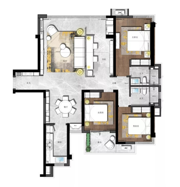 珠海華發四季城三居現代簡約風格裝修效果圖