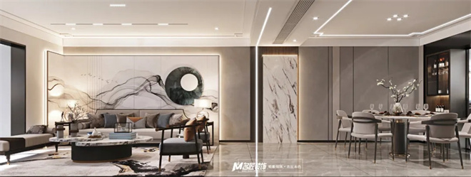 讓空間不至于局促憋悶。再依據現代裝修的特點結合大理石、黃銅、水晶等元素