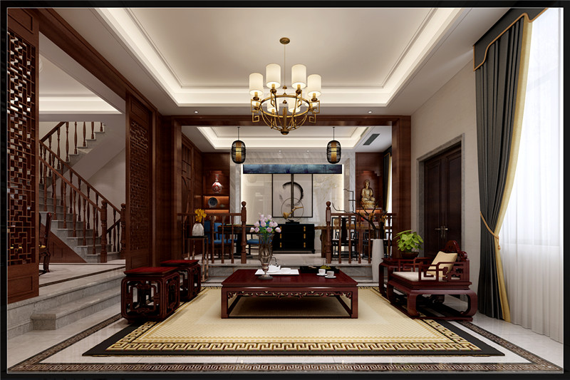 六安華邦新華城別別墅新中式風格裝修效果圖