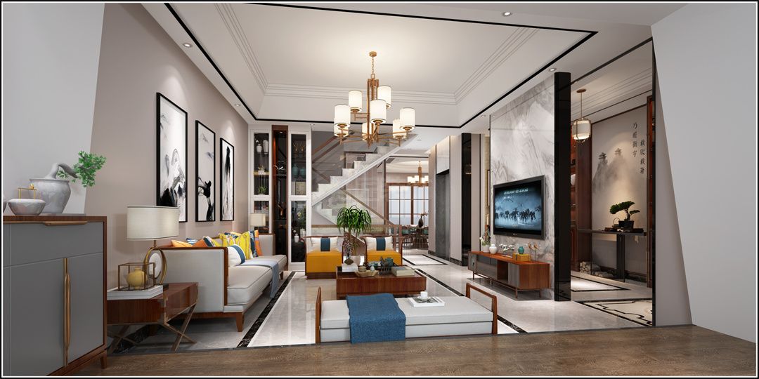 中山保利林語麓山別墅新中式風格裝修效果圖