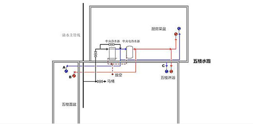 • 8、冷熱水管要遵循左側熱水、右側冷水及上熱下冷的原則